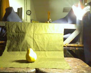 I was back in class yesterday up in the 3d floor loft studio at the Palette & Chisel, painting a pear in 5 grayscale values. It was my first class with Michael Van Zeyl, highly-recommended still-life painting teacher at the academy. After working on my drawing skills for the past year and half, it’s time to move on to other painting essentials–value, edges, color, and composition. Next week, I’ll do the same pear in color. If all goes well, I’ll post the pear (of) paintings.