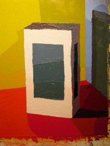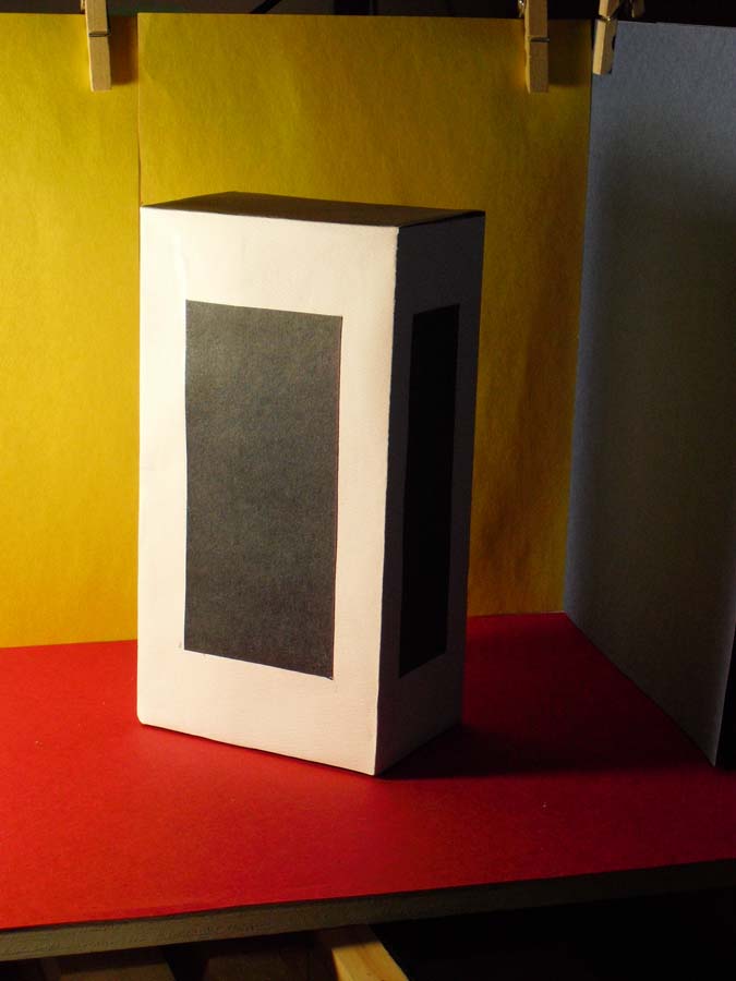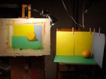 Here, as promised but late, are two color studies along with photos of their set-ups from a book by Arthur Stern, “How to See Color and Paint It.” These are great exercises in seeing actual color spots instead of just assuming what color something is. One of the points in the box one is that the white top of the box in the right lighting can look darker than the black on the front of the box.