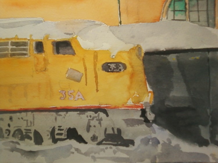 Train in Snow Lesley likes train pictures, so every so often I try to do one. Besides, it was the only thing I could find with any color in the snow. Camera pic’s kinda washed out. Share this: Click to share on Facebook (Opens in new window) Facebook Click to share on X (Opens in new window) X Like Loading... Related By kencrocker Fine artist; graphic artist; draughtsman; digital artist View all of kencrocker's posts.