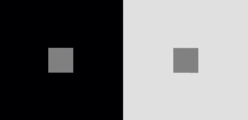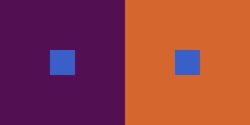 Just in case you didn't believe me that the two small squares are the same color, here's the proof. (Although it looks that way, you'll have to trust me that the middle bar is one flat color and not a gradient.)