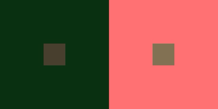 After doing color studies to make one color look like two based on value, then on hue, then saturation, and finally all three, I came to the final exercise in this section of David Hornung's book, “Color: A Workshop for Artists and Designers” (see previous posts). In this exercise, he asks you to make two colors look like one. Above is my version of the example he gives in the book. Yes, believe it or not the two small squares are two different colors. Here's the proof: