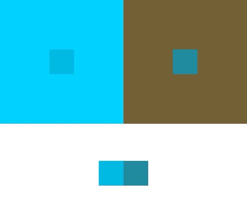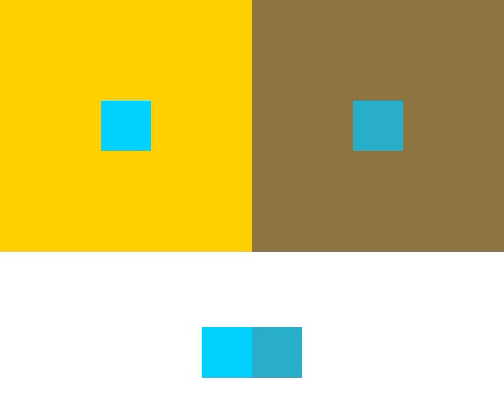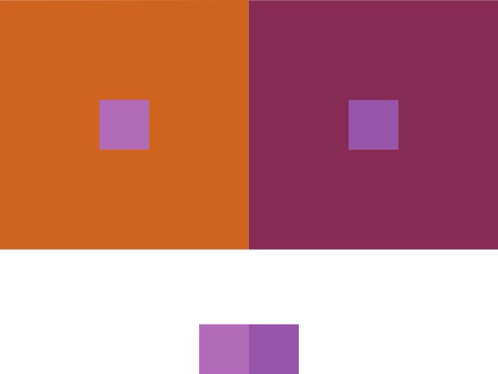 Here are my solutions for the exercise that calls for making two colors look like one. Each pair of small squares below a pair of big squares matches the small squares inside the bigger ones. This exercise turned out to be easier than I thought it would be. I think doing all the previous exercises helped me when I came to this one.