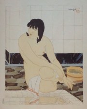 And here's the 1934 Japanese print by Toraji Ishikawa titled “In the Bathroom” that I used for the basic design: