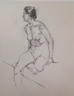 I guess you could say this 25-minute drawing from last night's open studio is neither a gesture or structure drawing. But it is the result of thinking a lot about these two aspects of figure drawing. I'm trying to use gesture to draw the whole connected figure instead of doing it part-by-part, and I'm trying to use construction to put form into the drawing and place parts of the anatomy properly. Trust me, it's really hard. The construction part I get better than the gesture part.