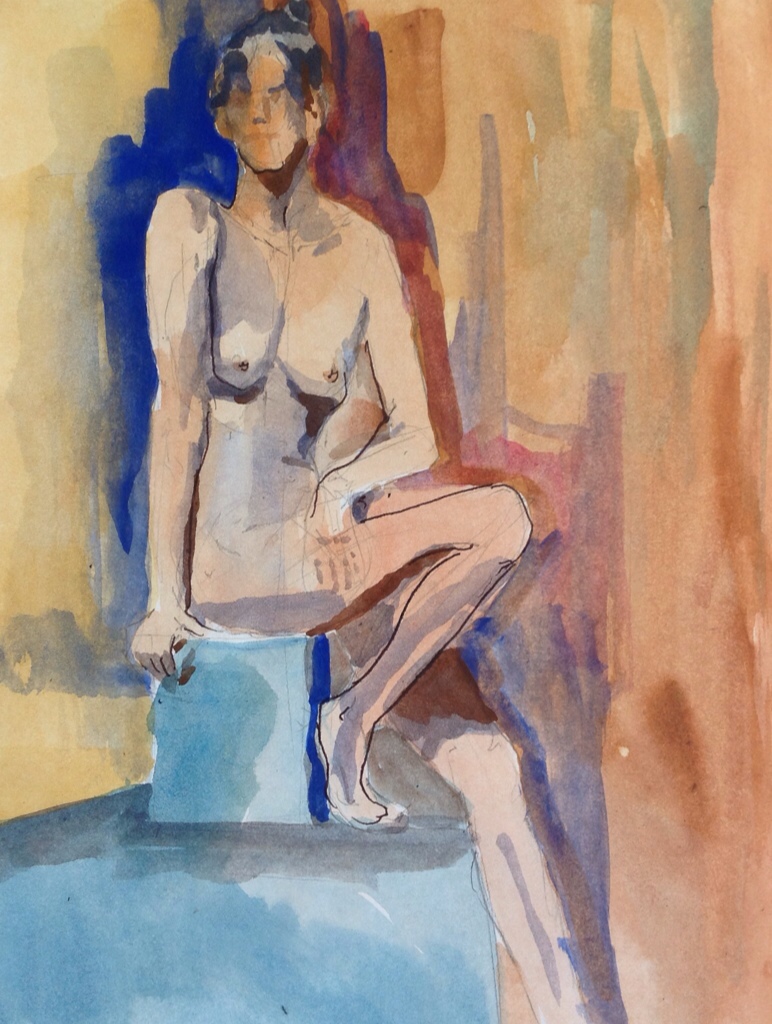 For the last three half-hour poses, follow the above steps and then add watercolor and pen, as in the picture at the top.