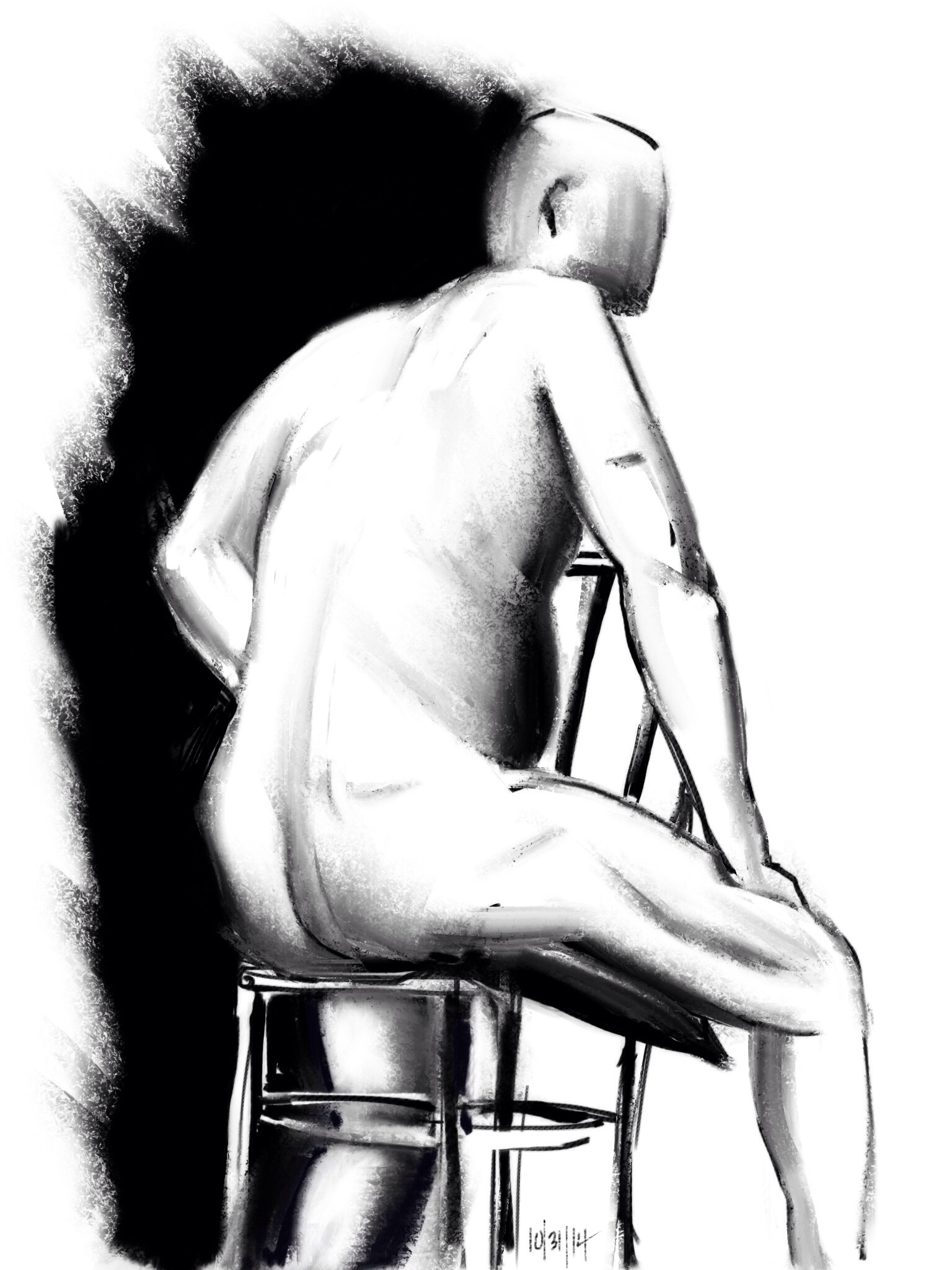 Pushing Electrons Around Latest iPad quick sketch. Procreate custom brushes. Thirty minutes. Done after watching a Steve Huston video on shading. Share this: Click to share on Facebook (Opens in new window) Facebook Click to share on X (Opens in new window) X Like Loading... Related By kencrocker Fine artist; graphic artist; draughtsman; digital artist View all of kencrocker's posts.